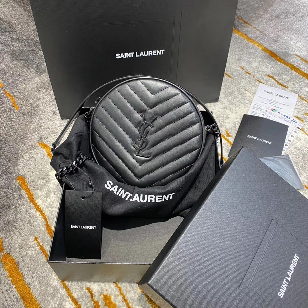 Y*L vinyle round camera bag in chevron-quilted smooth leather